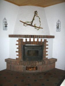 Der Innenbereich überzeugt mit einem Kamin und Sitzplätzen für bis zu 50 Personen – ideal für Feiern in angenehmer, uriger Atmosphäre.